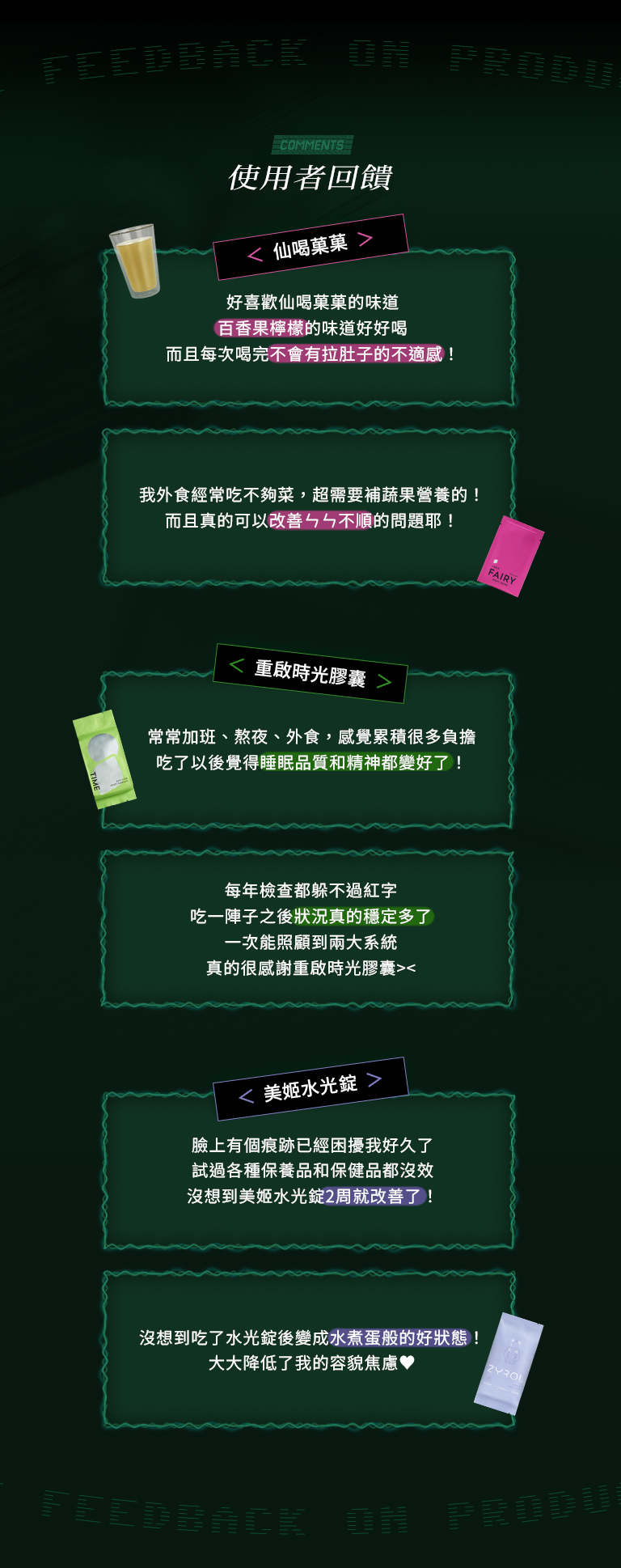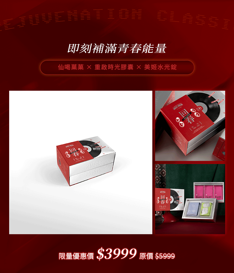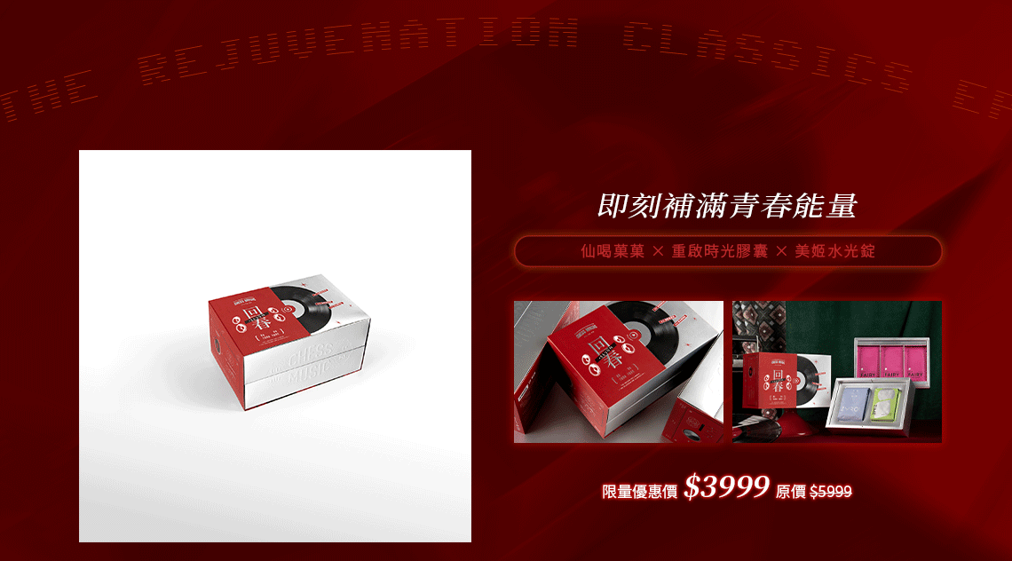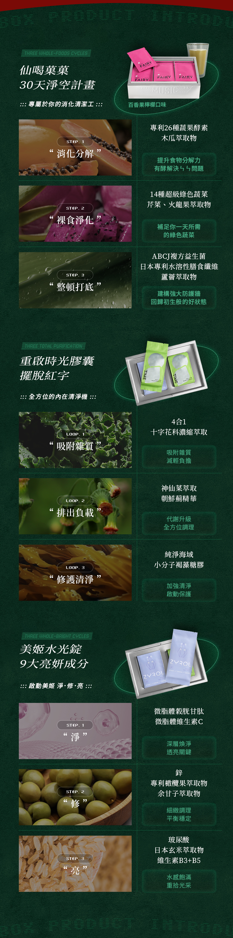 內容物:仙喝菓菓、重啟時光膠囊、美姬水光錠,各30天份