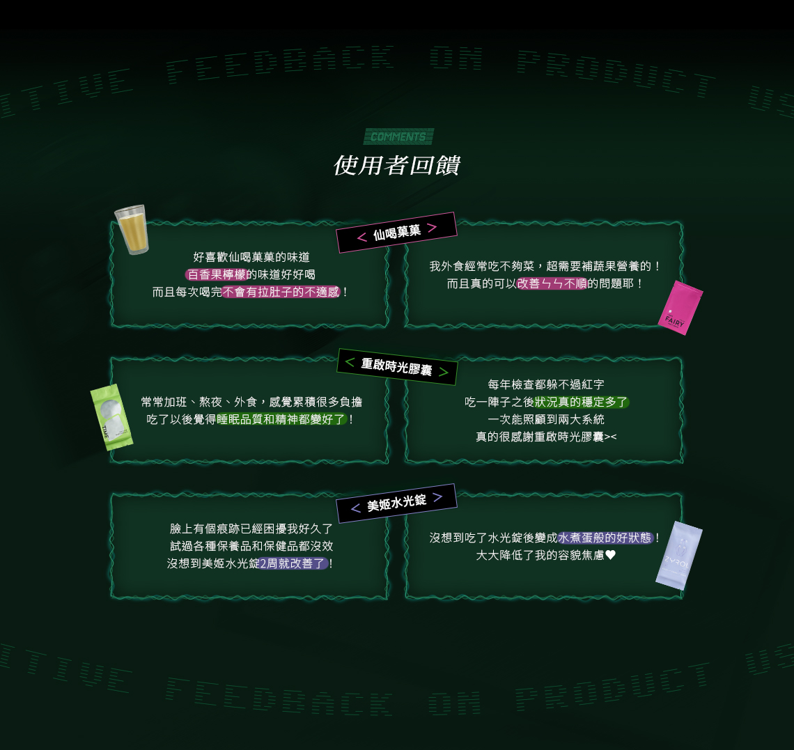 快速補菜|擺脫惡習|舒暢透氣|清理負載|提升防護