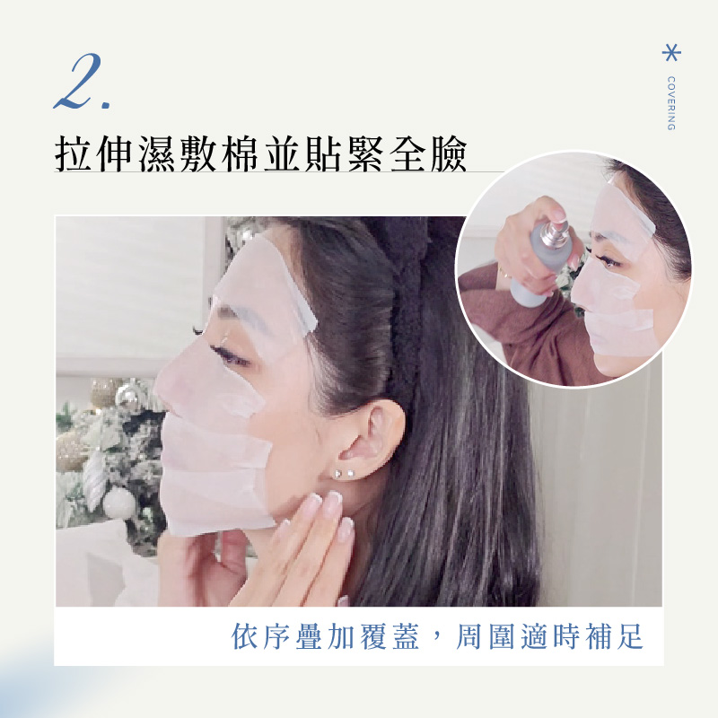 濕敷用的化妝棉需要具備輕薄透氣、吸水性高的性質,選擇可拉伸的專用濕敷棉,浸濕後才能夠更好的服貼於臉上。