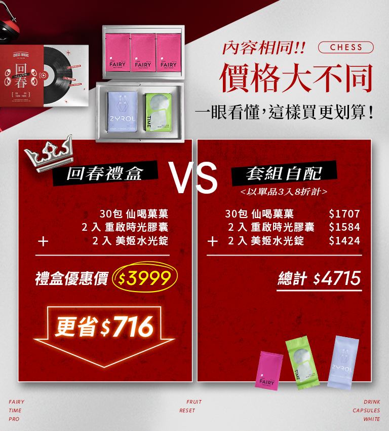 內容物:仙喝菓菓、重啟時光膠囊、美姬水光錠,各30天份