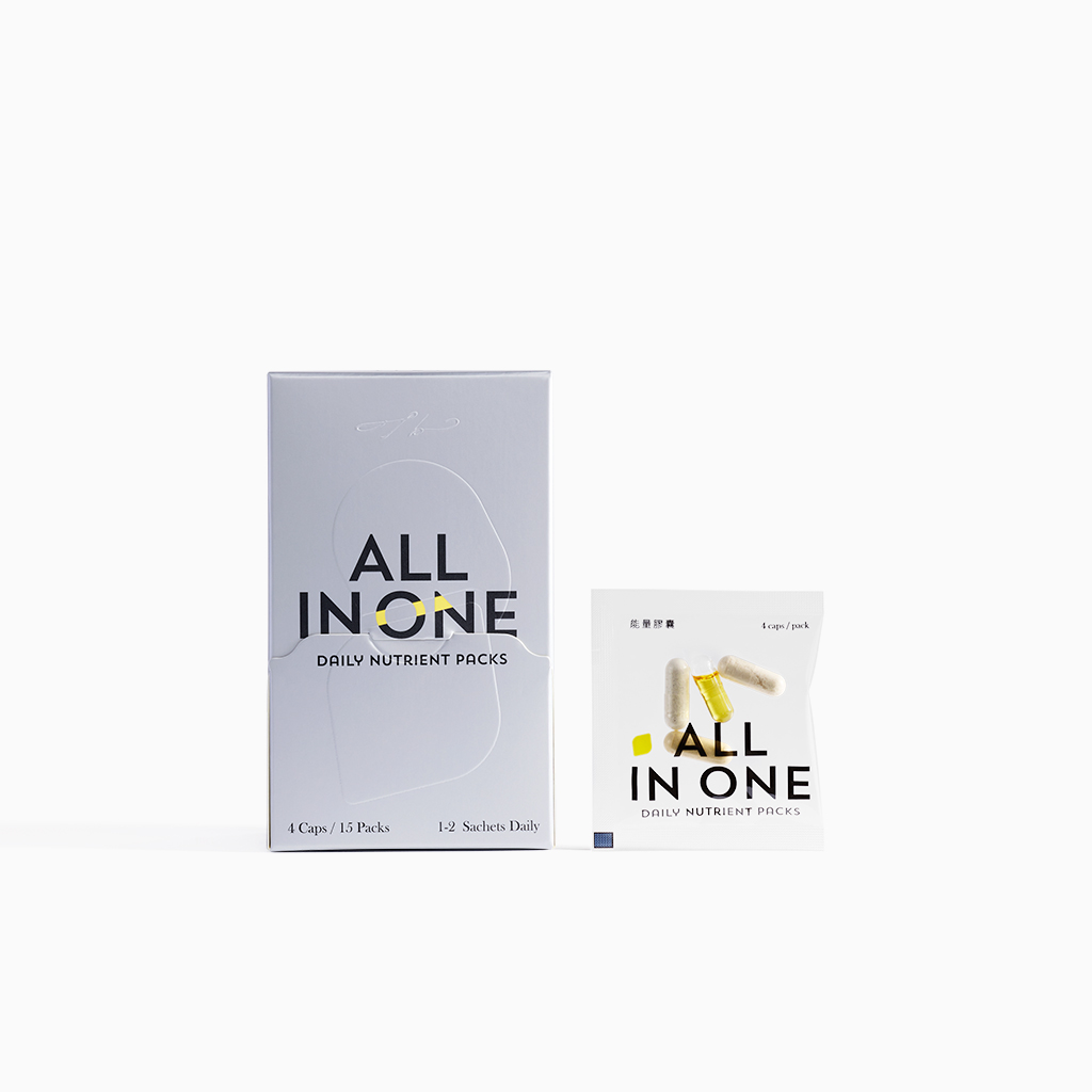 ALL IN ONE 能量膠囊濃縮每日營養,一包 4 顆即可替代市售 4-5 種保健品,對於保養新手吃 ALL IN ONE 能量膠囊即可,保健老手可靈活搭配額外補充。