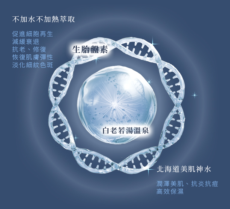 ● 生胎盤素 : 透過獨家的製造程序,萃取之生胎盤素含有豐富的生長因子,滋養肌膚和頭皮