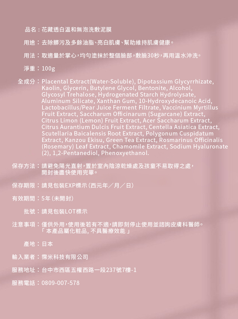 ▸花藏透白溫和無泡洗敷泥膜 2027/10/26