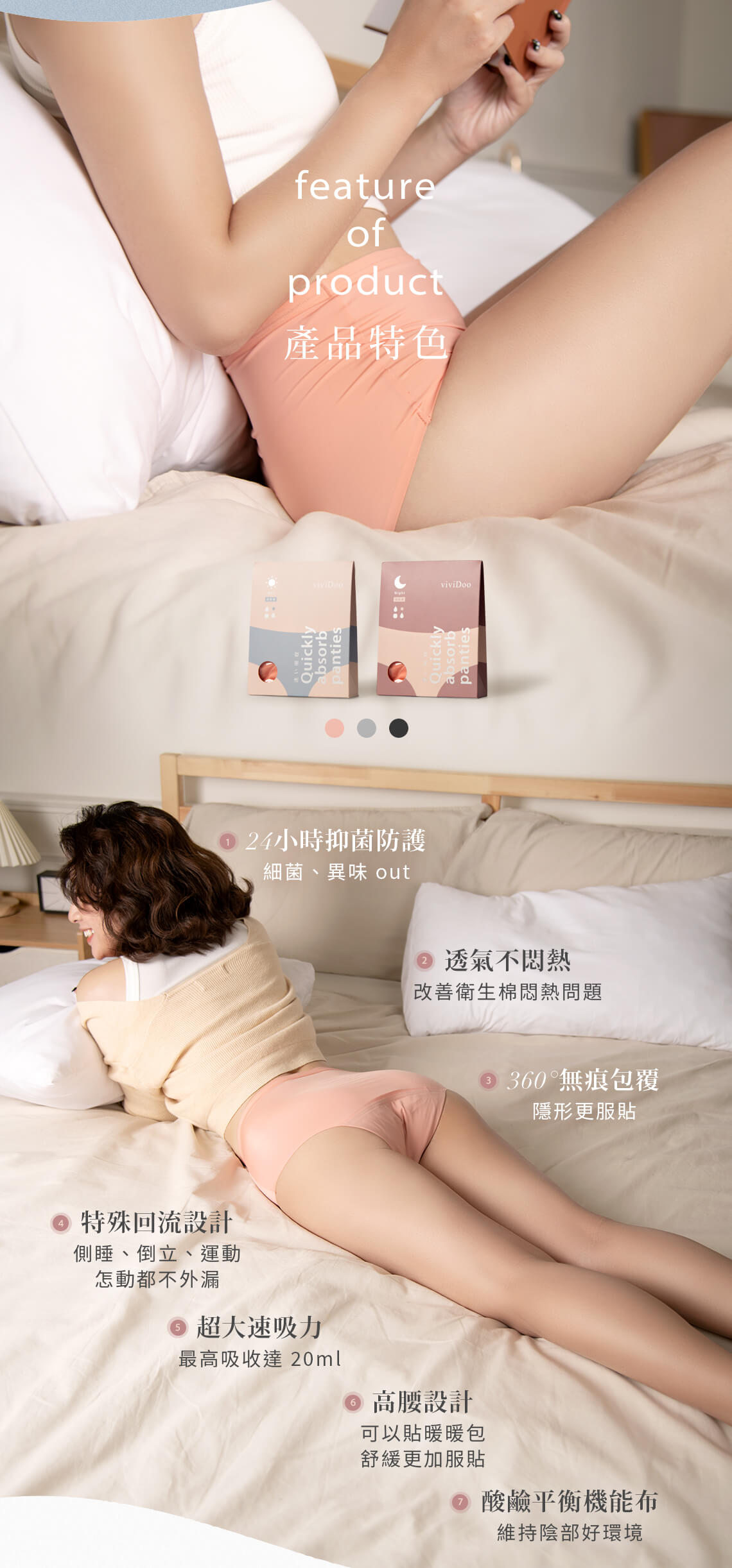 • 特殊回流設計:側睡、倒立、運動,怎麼動都不外漏