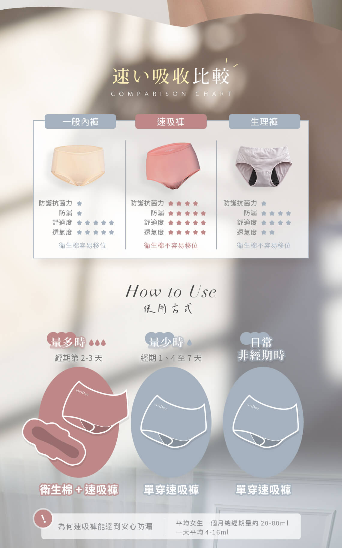 • 透氣不悶熱,取代護墊/衛生棉,減少發炎症狀