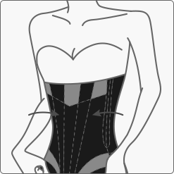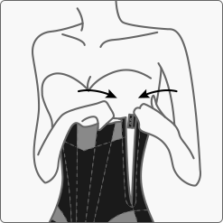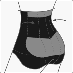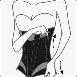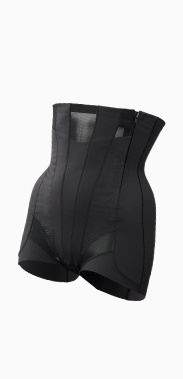 ● 穿著過程中請留意指甲,避免勾破布料;穿至腰部後,先扣上鉤扣再拉拉鍊會更順手;穿好後請對鏡確認:前腹加壓區與後腰鋼條位置是否正確不跑位。