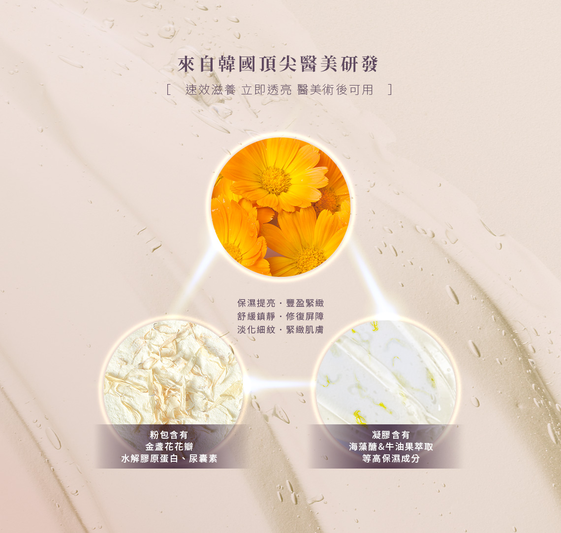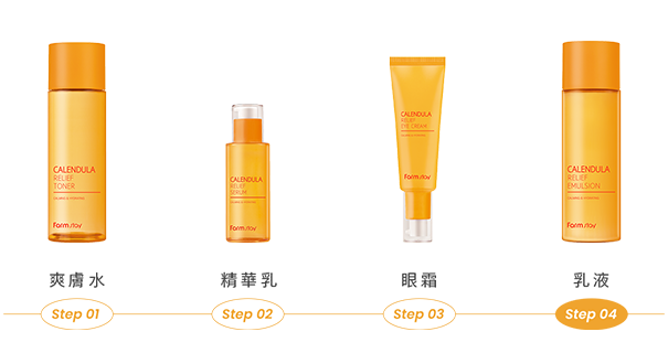 韓國金盞花爽膚水 ▸ 韓國金盞花零毛孔精華 ▸ 韓國金盞花抗痕眼霜 ▸ 韓國金盞花保濕乳液