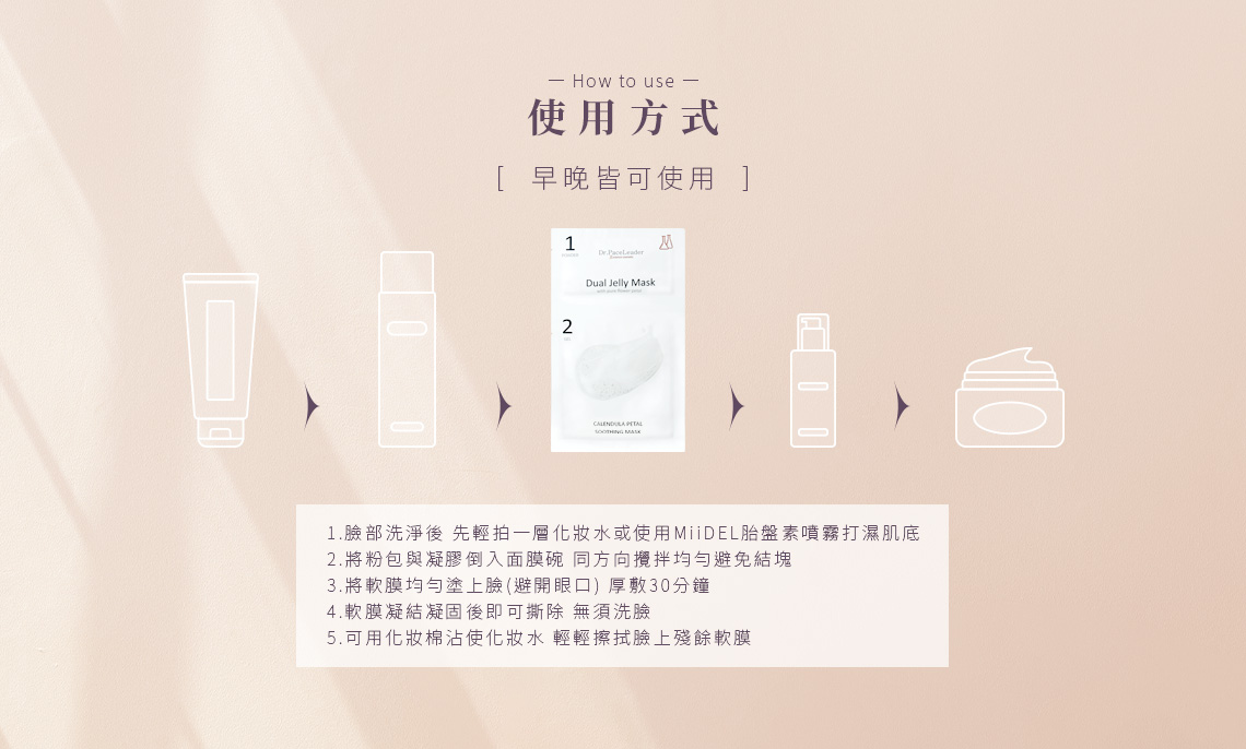 ▸敏感性肌膚 請先小範圍使用於耳後 局部測試無慮後再使用
