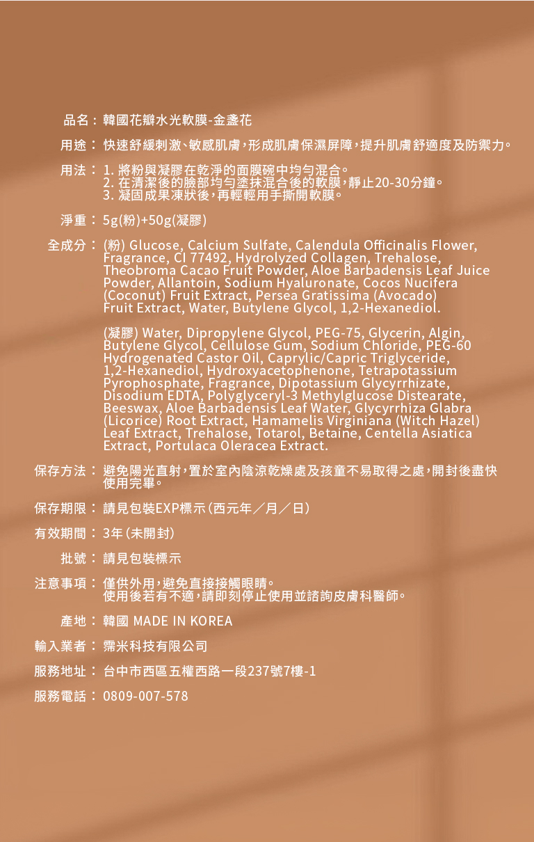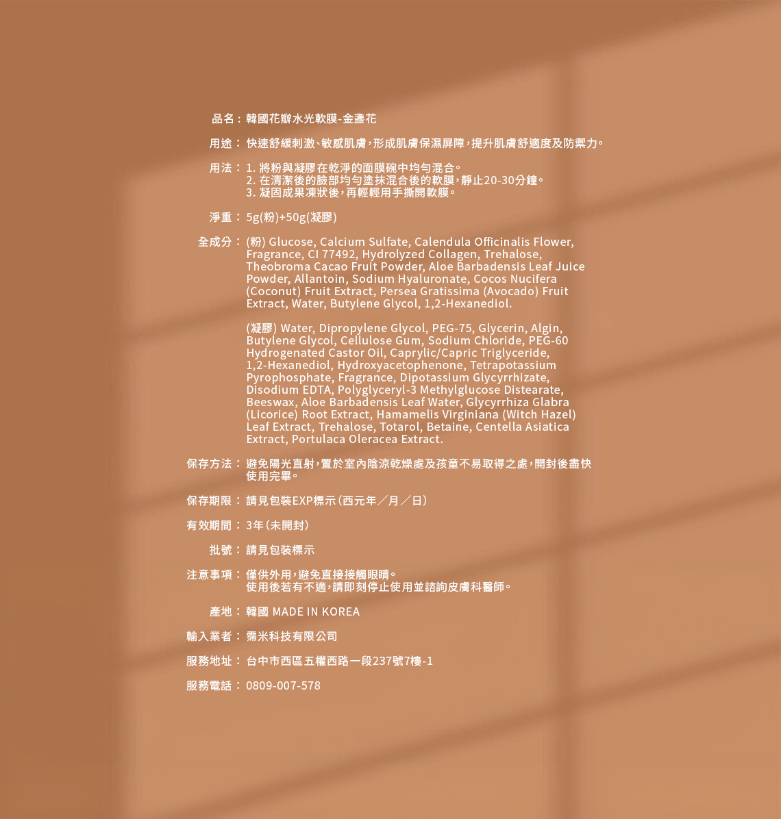 ▸添加金盞花等植萃成分 鎮定、保濕、低刺激