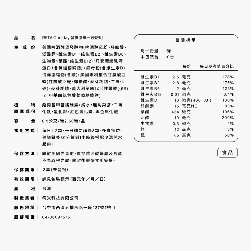 Reta One day營養膠囊是我的孕期好隊友,一天兩顆就有精準營養,不需要另外吃多種補給品,完整配方專業又安心,推薦給每一位孕媽咪。