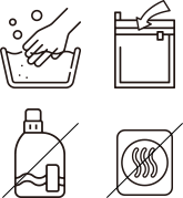 洗滌時建議手洗(水溫不超過30度C),微浸泡、不能搓。