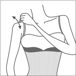 ● 從臀部拉起,扣起底部再將塑身衣往上拉至胸下,穿上肩帶,調整背部沒拉好的塑身衣再進行調整肩帶