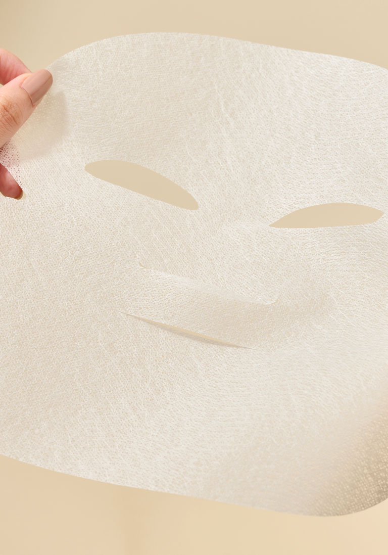 100%使用羽絲絨,棉絨布膜取自純天然的棉花籽粒,將最細緻的棉絨部分以國外獨家引進的「絲段光養成術」精煉,纖細的織入一張張蘊含豐富棉絨精華的面膜布中。