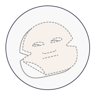 臉部清潔後,面膜布膜朝內、珍珠紙朝外貼於臉部,調整至概略位置後取下珍珠紙,再將臉側切口往上拉並調整提服貼臉部,10-15分鐘後取下,按摩臉部精華液至吸收。