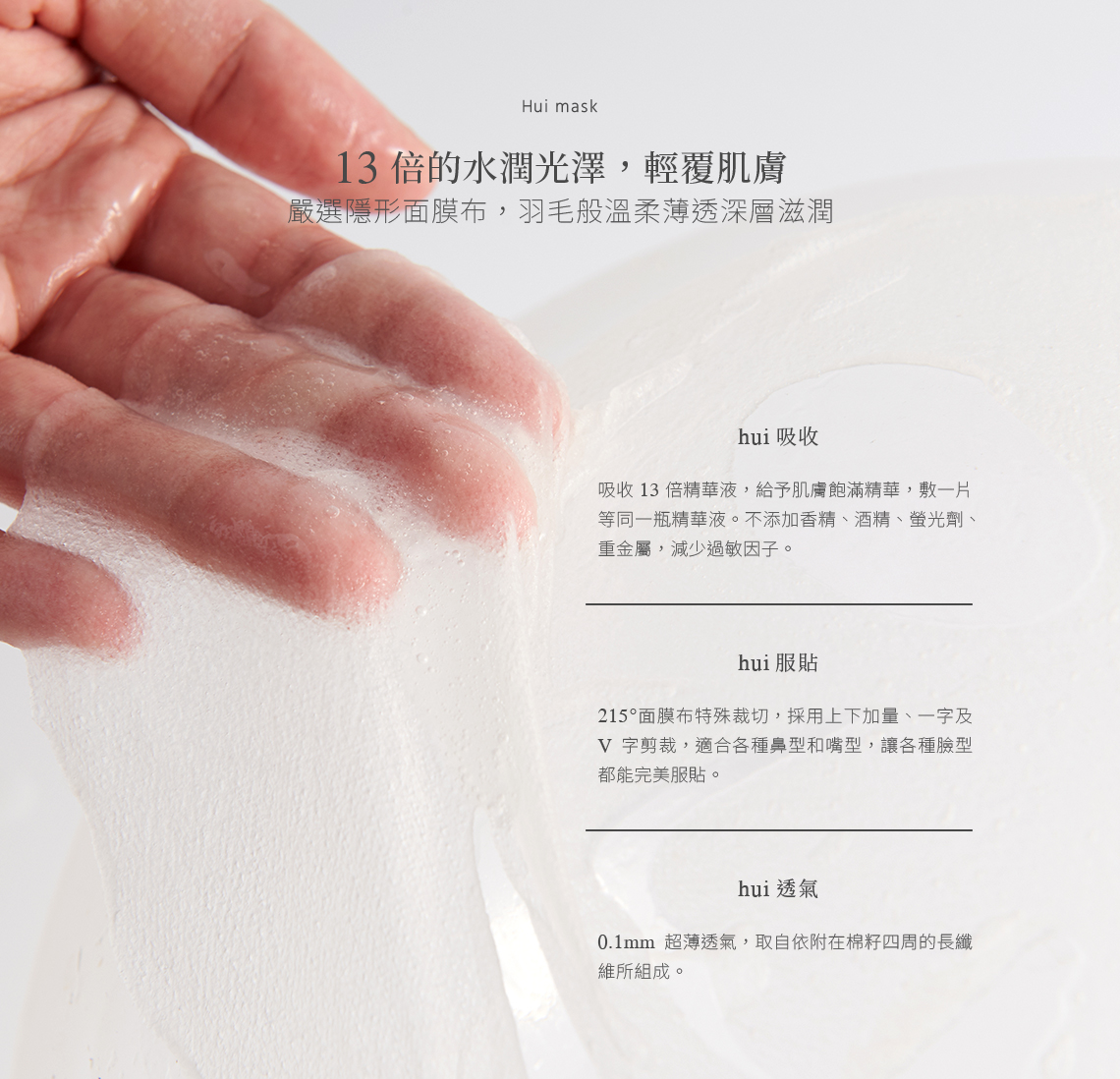 - 日本羽絲絨布 13 倍吸收效果,零入侵敷出透亮肌