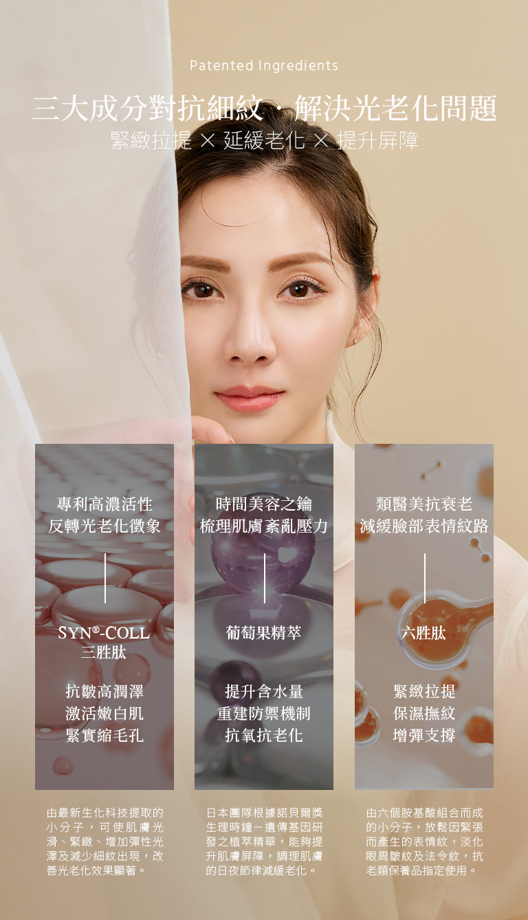 - 緊緻拉提|SYN®COLL、日本葡萄果萃取 、六胜肽