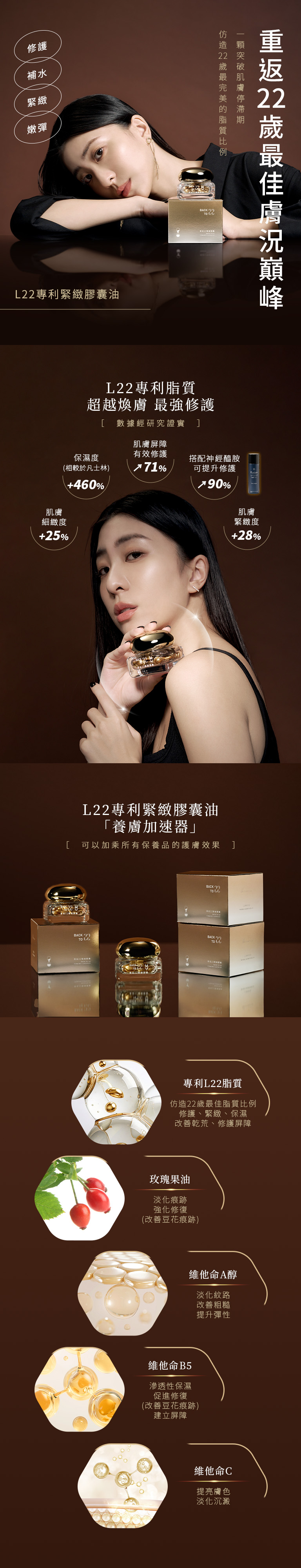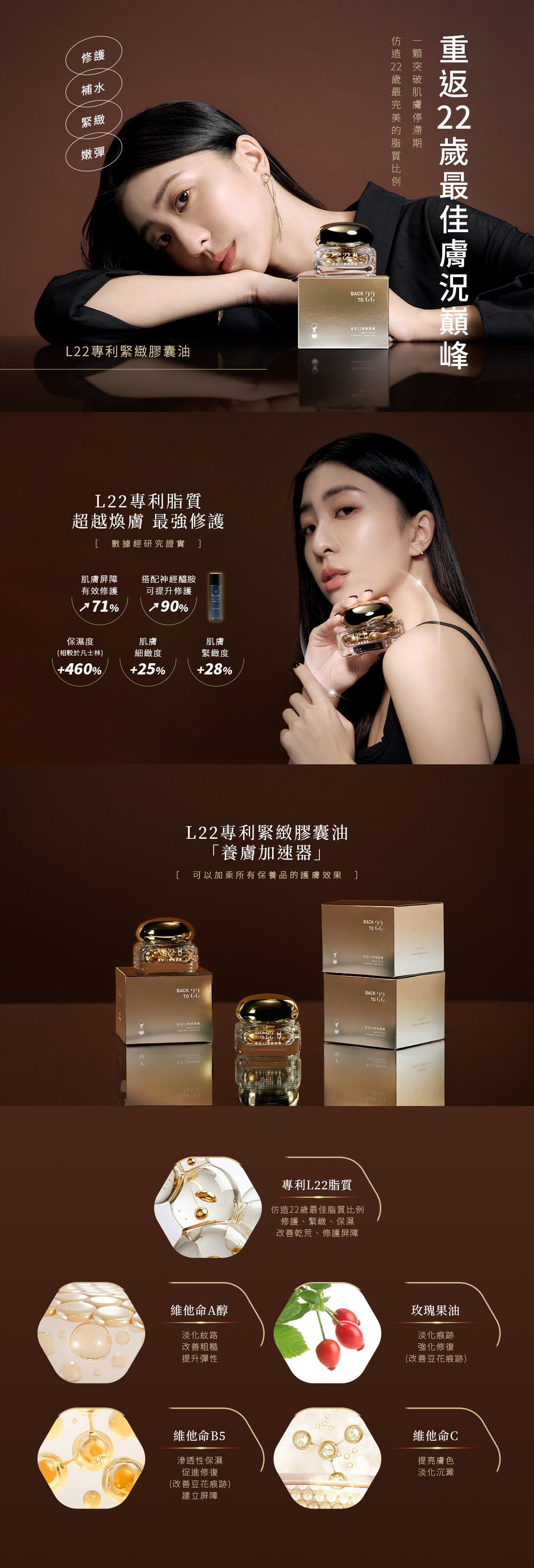 ● 專利L22脂質,仿造22歲年輕肌膚皮脂,還原最佳狀態