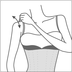 ● 兩邊褲角都拉好,確認有在鼠蹊部,並從臀部拉起,將塑身衣往上拉至胸下,穿上肩帶,調整背部沒拉好的塑身衣再進行調整肩帶